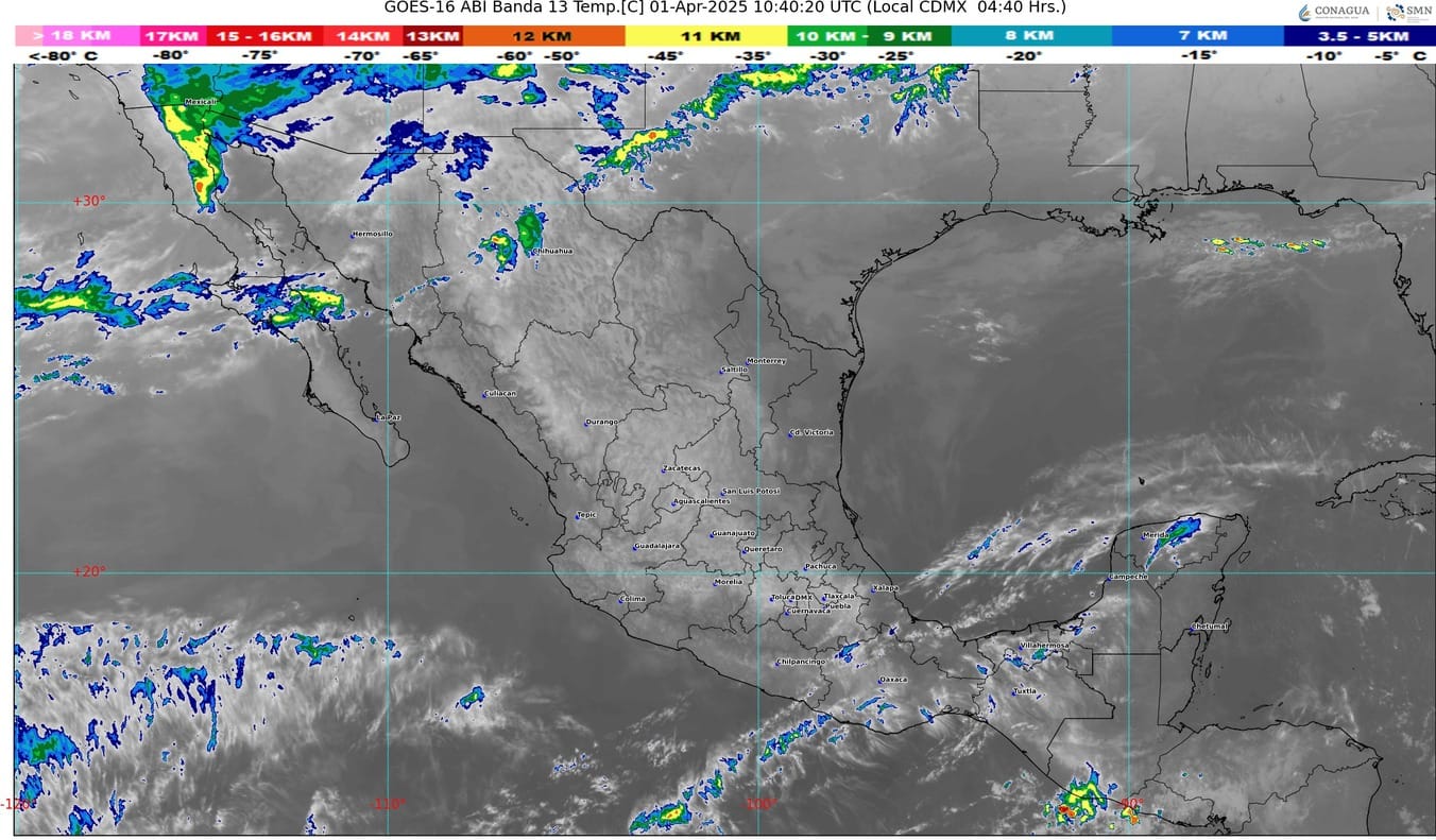 Continuará el ambiente diurno cálido a caluroso sobre gran parte de la República Mexicana, así como la onda de calor en zonas de Nuevo León (sur), Tamaulipas (suroeste), San Luis Potosí (norte, centro, sur y este), Querétaro (este), Hidalgo (noreste y este), Puebla (norte), Jalisco (centro, sur y sureste), Colima (este), Michoacán (oeste, centro y sur), Morelos, Guerrero (norte, oeste y este), Veracruz (centro y sur), Oaxaca (centro y este) y Chiapas (noroeste y centro).