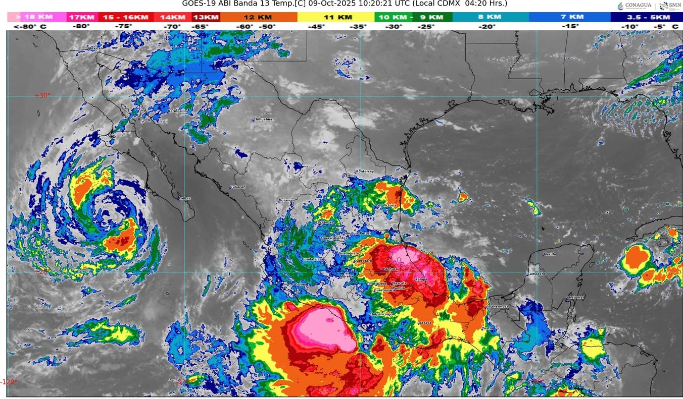 Una zona de baja presión con probabilidad para desarrollo ciclónico o posible ciclón tropical, se localizará frente a las costas de Guerrero y Michoacán, su extensa circulación y desprendimientos nubosos, en interacción con un canal de baja presión sobre el noreste y oriente del país, además de los desprendimientos nubosos de la vaguada monzónica en el Pacífico Sur Mexicano, mantendrán un temporal de lluvias muy fuertes a intensas en las regiones mencionadas, además del sur y sureste del territorio nacional.