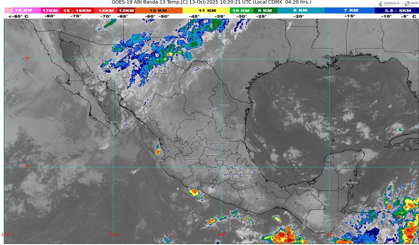 Por otro lado, canales de baja presión sobre el oriente, occidente, sur y sureste del territorio nacional, en combinación con los desprendimientos nubosos de la vaguada monzónica que se extenderá frente a las costas del Pacífico Sur mexicano, la onda tropical número 37 sobre Guerrero y otra vaguada en altura sobre la península de Yucatán, propiciarán chubascos y lluvias fuertes en las regiones mencionadas; con lluvias puntuales muy fuertes en Chiapas.